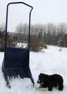 I stuck Hope by shovel to give an idea of it's size. As you can see - Hope is not impressed. He's actually shivering like a baby. It's minus 25 which is balmy compared to the minus 37 we've been living with this week, but Hope doesn't see it that way. If he had his way he wouldn't go outside till about April.